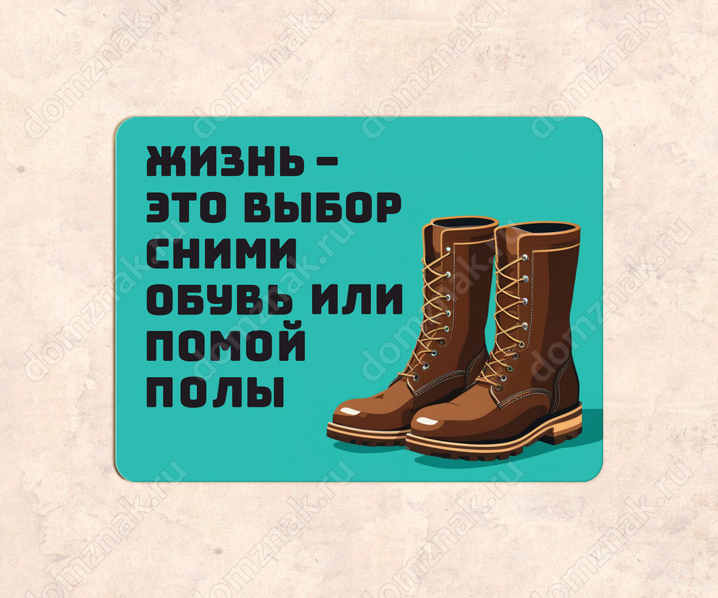 Табличка «Жизнь - это выбор. сними обувь или помой полы»