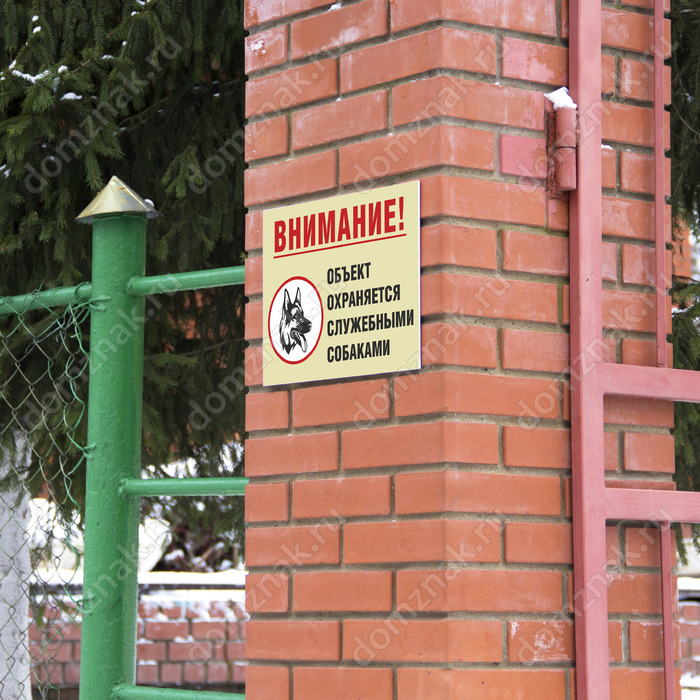 Табличка «Внимание охраняется служебными собаками» изготавливается на основе из пластика ПВХ или оцинкованного металла.
